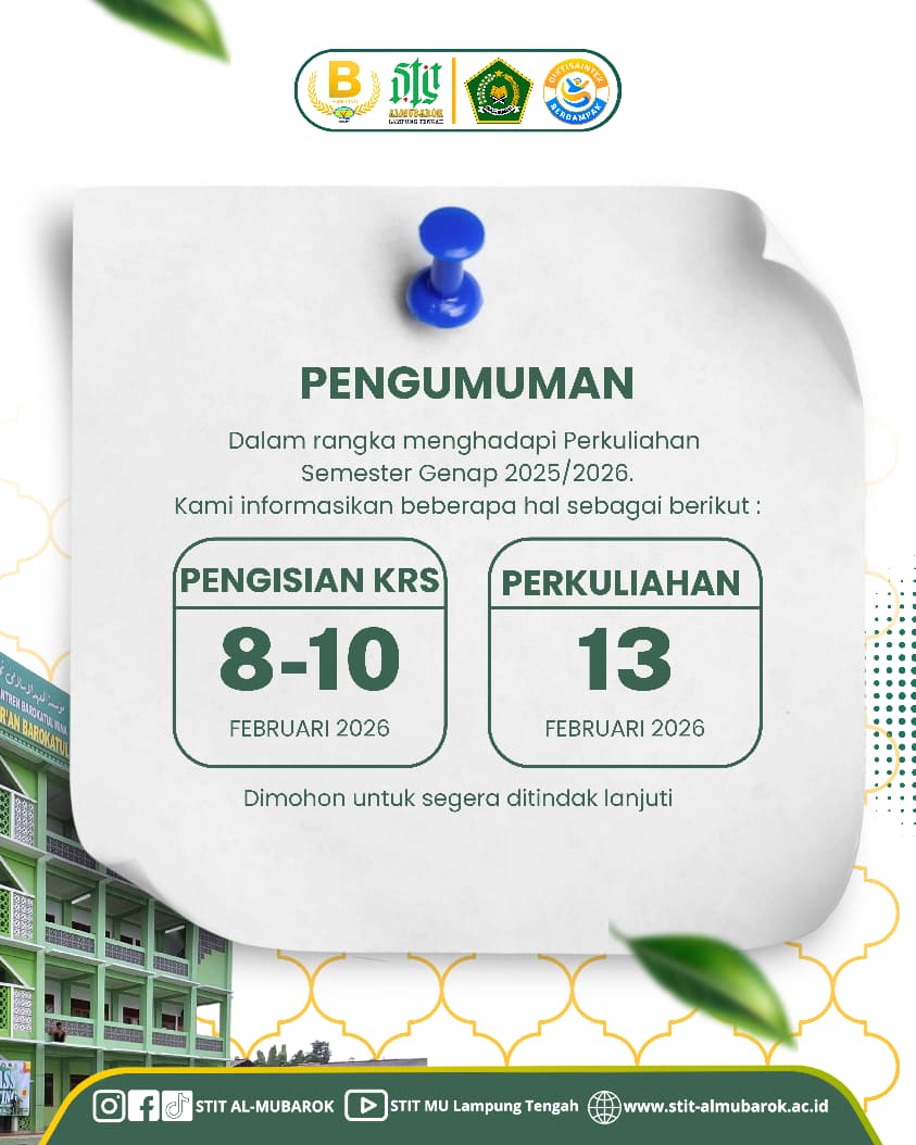 STIT Al Mubarok Lampung Tengah telah sukses menyelenggarakan Seminar Akademik Pembukaan Matrikulasi Bahasa pada Sabtu, 14 Desember 2025, bertempat di Aula STIT Al Mubarok. Kegia...